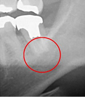 根管治療をした後、歯肉が腫れて膿が出てくることがあります。「根尖病巣(こんせんびょうそう)」と呼ばれるもので、根管治療の不具合で歯根の先端で細菌が繁殖したことで起こる症状です。